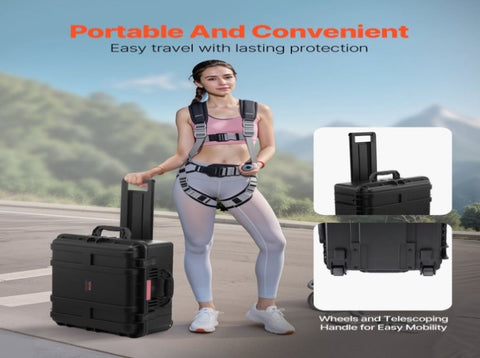 Equipped with an extendable handle and wheels, this waterproof hard case is a breeze to transport. Whether you're heading on an adventure, a photography trip, or a diving excursion, it’s designed for easy handling and all-around protection.