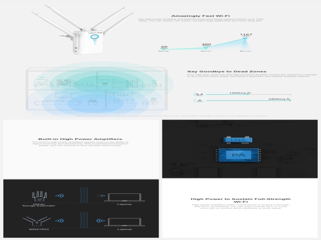WAVLINK AC1200 Dual Gigabit Ethernet Ports Wi-Fi Range Extender V28-NETWINWSWN579G3