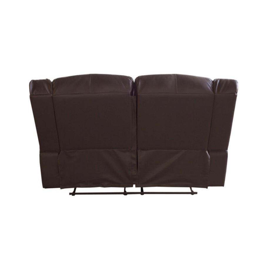 Aesthetic Demeanor in leatherette upholstery and fluffy cushioning of this recliner sofa make it stand out from the crowd. Designed with style and comfort in mind, the spacious armrest and cozy seat give this recliner an inviting look, while the quilted seats with plump cushioning give it a luxurious feel.