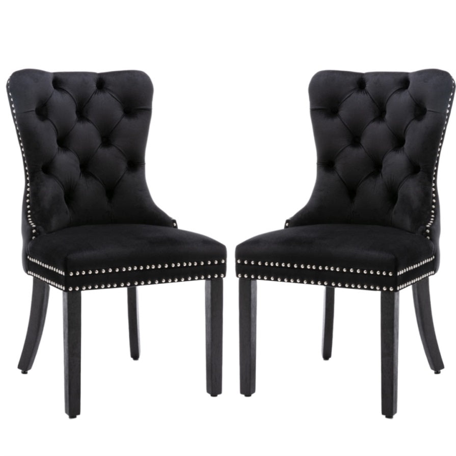 2x Velvet Dining Chairs Upholstered Tufted Kithcen Chair with Solid Wood Legs Stud Trim and V226-SW8801BK