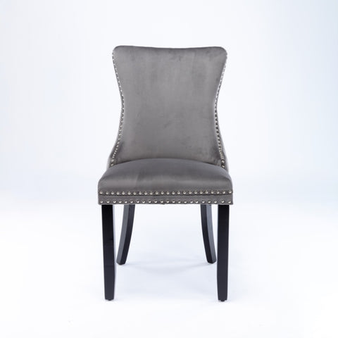 2x Velvet Upholstered Dining Chairs Tufted Wingback Side Chair with Studs Trim Solid Wood Legs for V226-SW8809GY
