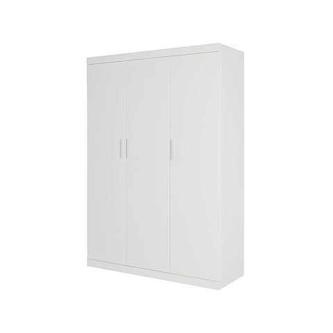 Add modern style and smart storage to your bedroom with this 3 Door Freestanding White Wardrobe. Crafted from steel plates with a sleek powder-coated surface, it's built for daily use. Stylish white metal handles provide a premium accent to its clean, contemporary design.