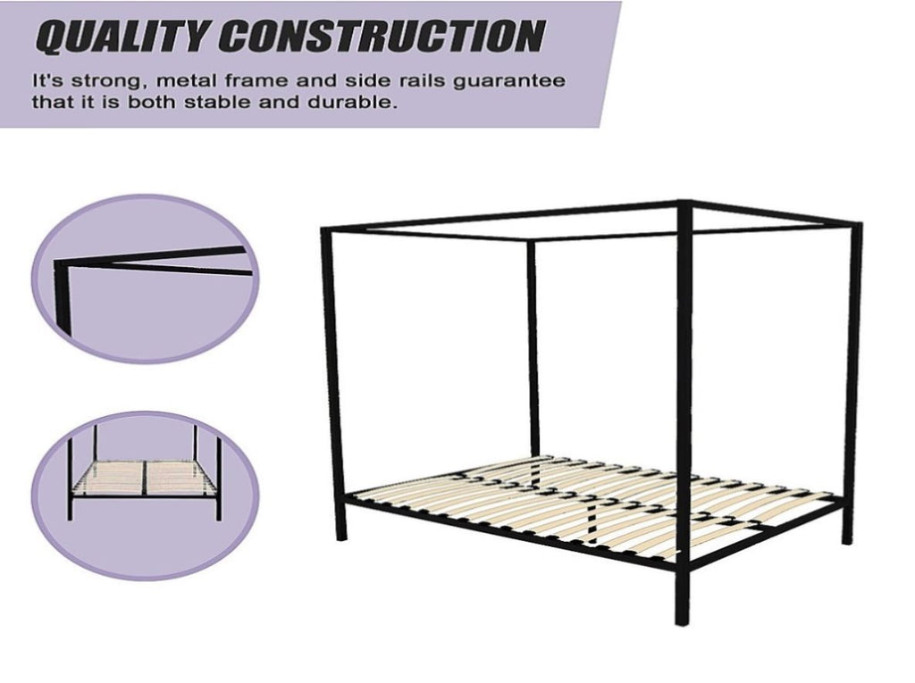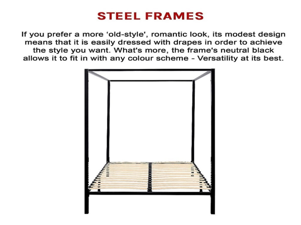 It is also an ideal choice for those who want a sturdy four-poster bed that will last. It's strong, metal frame and side rails guarantee that it is both stable and durable.
