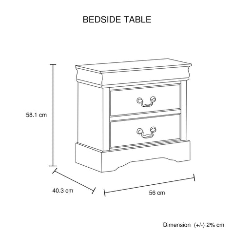 Please Note: This package comes onlyBed x1, Bedside Table x2, Dresser x1