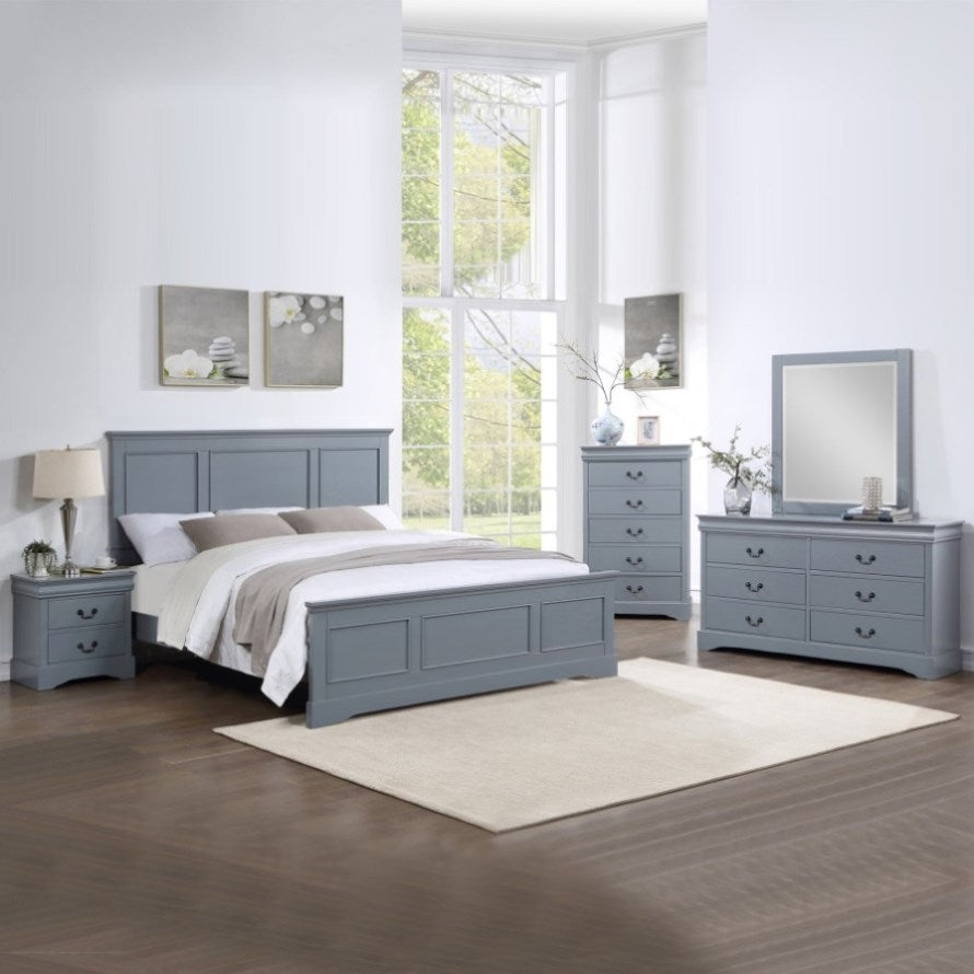 5 Pieces Bedroom Suite in Solid Wood & MDF King Size Grey Colour Bed, Bedside Table, Dresser & V43-BDS-SPNC-5PC-TBY-DRS-K