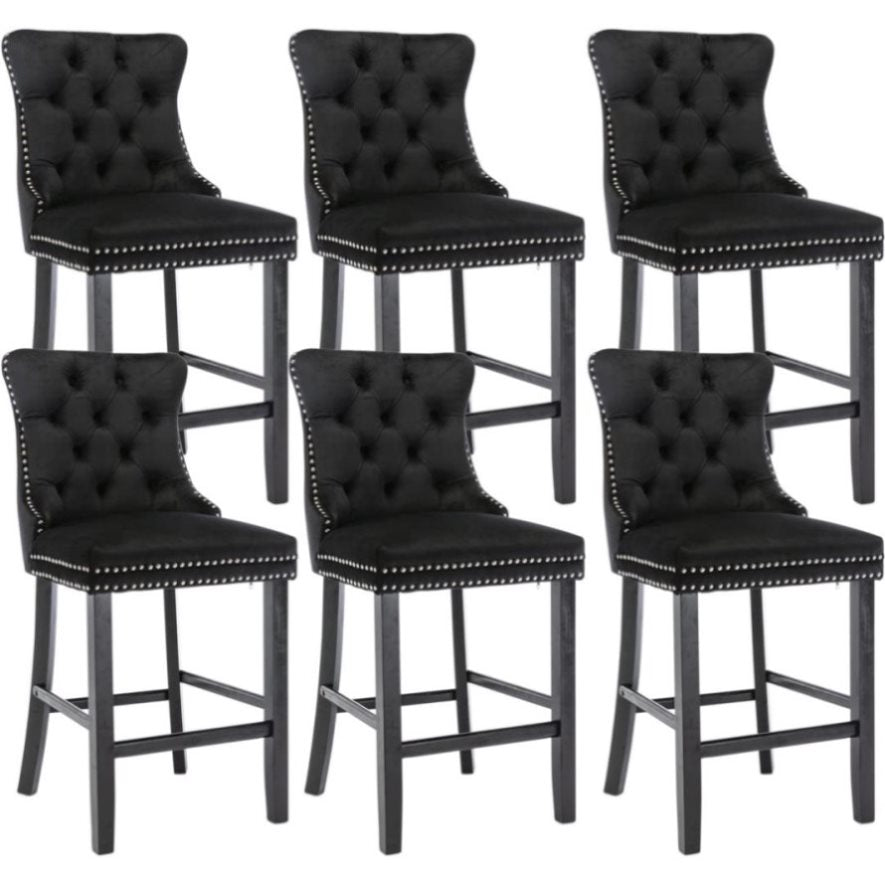 6X Velvet Bar Stools with Studs Trim Wooden Legs Tufted Dining Chairs Kitchen V226-SW1802BK-3