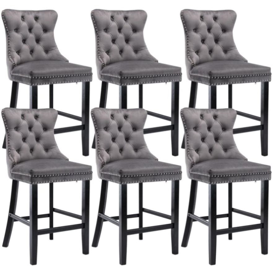 6X Velvet Bar Stools with Studs Trim Wooden Legs Tufted Dining Chairs Kitchen V226-SW1802GY-3
