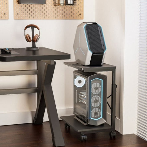 The activiva Height Adjustable PC Printer Storage Stand is a versatile solution designed to accommodate most PCs and printers. With 8-level height adjustment, ample storage space, smooth casters, and sturdy construction, it offers stability, durability, and convenience for organizing your workspace.