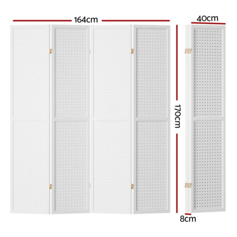 Artiss 4 Panel Room Divider Screen 164x170cm Pegboard White RD-HLW01-4P-WH