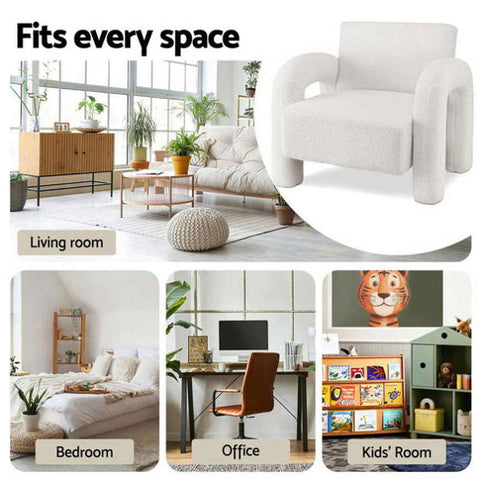Upgrade your home with this Artiss accent armchair, designed for both comfort and style. Featuring a soft boucle upholstery, ergonomically curved armrests, and extra-thick cushions, it offers the perfect blend of luxury and support. The sturdy pine wood frame ensures long-lasting durability while the anti-slip feet pads protect your floors. With a weight capacity of 150kg and easy assembly, this chair is ideal for any living room, bedroom, or office. Add a touch of elegance and comfort to your space today!