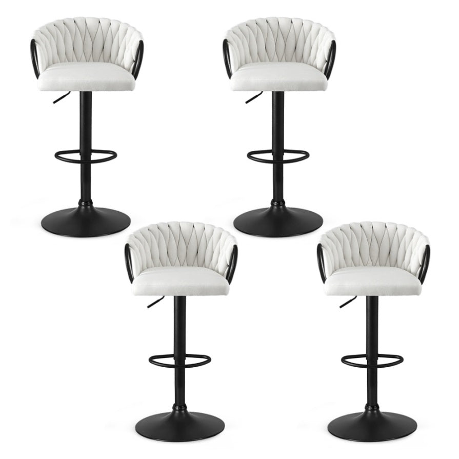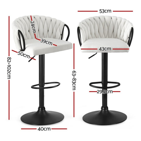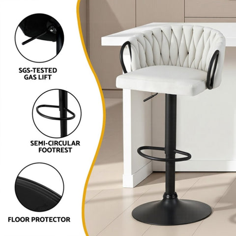 Artiss Bar Stool x4 Kitchen Dining Chair Counter Gaslift Woven Velvet Ivory BA-K-71096-BGX4
