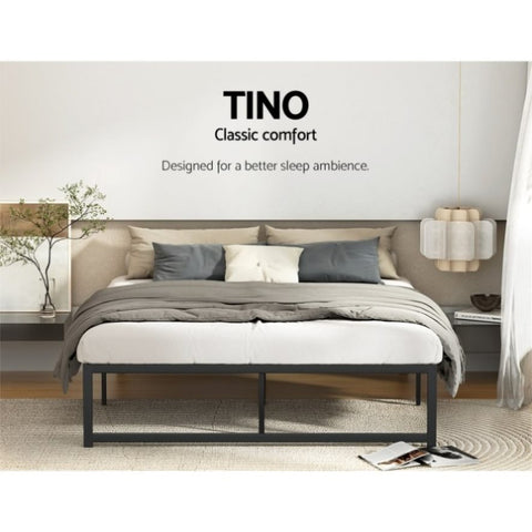 Looking for an affordable bed frame that doesn't compromise on quality or style Look no further than the Tino Bed Frame from Artiss. This minimalist bed frame features an enhanced powder-coated and rust-resistant steel frame with strongly reinforced steel centre slats to keep your mattress securely in place. With its simple design, this frame creates a clean, classic look that will transform your bedroom into a peaceful oasis of relaxation. It features ample space underneath to fit trundle drawers or other storage solutions, perfect for keeping your bedroom tidy. Plus, its neutral colour scheme ensures that it will complement any bedding or decor you choose to pair it with. Practical, functional and stylish, the Tino Bed Frame from Artiss is an easy purchase.