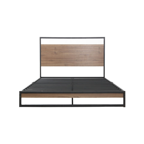 Metal and wood in perfect harmony. Our Dane Bed Frame is truly a stylish addition to any bedroom. Simple in design, the bed frame is meticulously constructed in sturdy steel and 15mm thick MDF with PVC for durability and strength. The sleek black powder-coated steel and dark wood accents lend real industrial cred to your bedroom for some standout décor. Across the frame, evenly spaced slats provide good weight distribution as well as ensuring that the mattress stays in place even with every twist and turn of your sleep. The central support beam further steadies the bed under robust use. Designed to fit standard size mattresses effortlessly, our eclectic bed frame is guaranteed to give you pleasant dreams with every sleep.