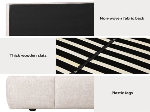 Take restful nights to a new level with the Tette bed frame. Constructed with solid hardwood with sturdy slats, this frame provides ample support, giving you peace of mind as you drift off to dreamland. Upholstered in premium beige linen fabric, it offers comfort in style. Sleep soundly, feel cozy, and look fabulous with the Tette bed frame!