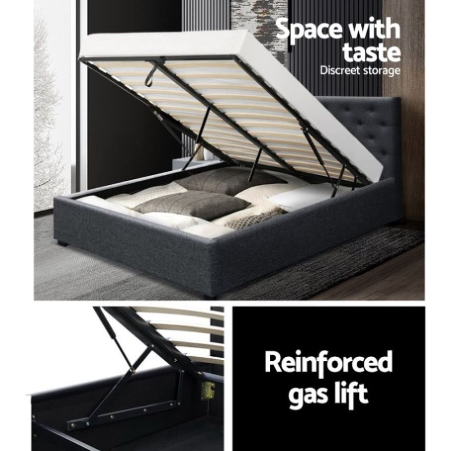 Artiss Bed Frame Queen Size Gas Lift Charcoal VILA BFRAME-E-VILA-Q-CHAR-AB