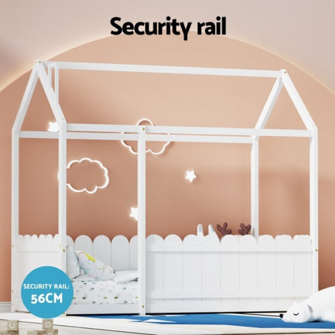 Artiss Bed Frame Wooden Kids House Single Frame White KORI WBED-KORI-S-WH-AB