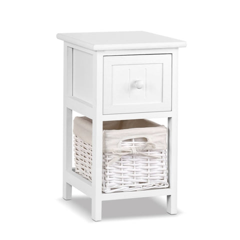 Artiss Bedside Table 1 Drawer with Basket Rustic White X2 ST-CAB-1D-1B-WHX2