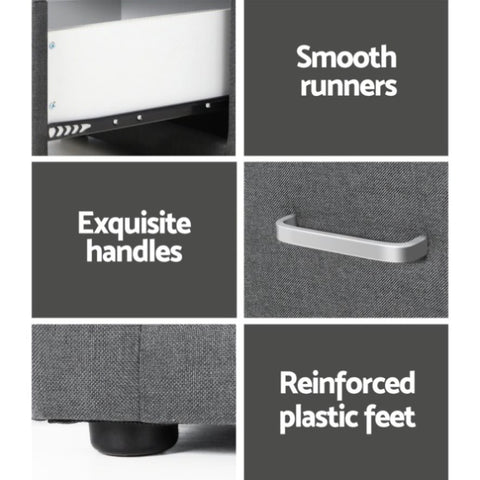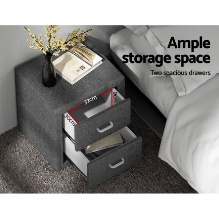 Artiss Bedside Table 2 Drawers Fabric - CADEN Grey BFRAME-E-BSIDE-GY