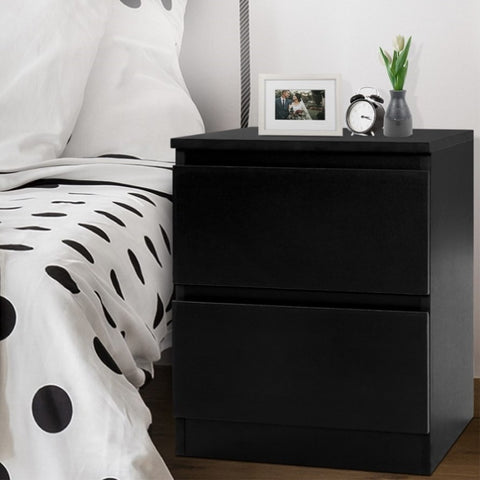 Artiss Bedside Table 2 Drawers - PEPE Black FURNI-E-PURE-BK