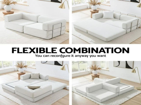 Artiss Convertible Folding Sofa Bed Beign SBED-E-FLD03-2S-BG-AB