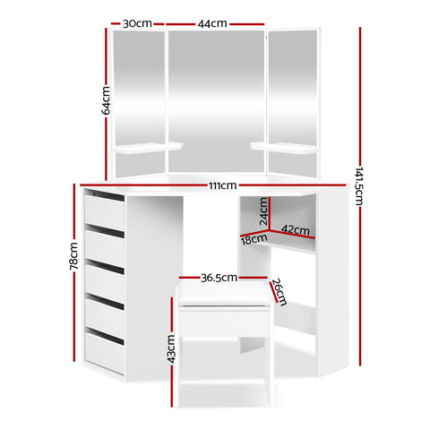 Artiss Dressing Table Stool Set Corner 5 Drawers White FURNI-L-DRESS01-WH-AB