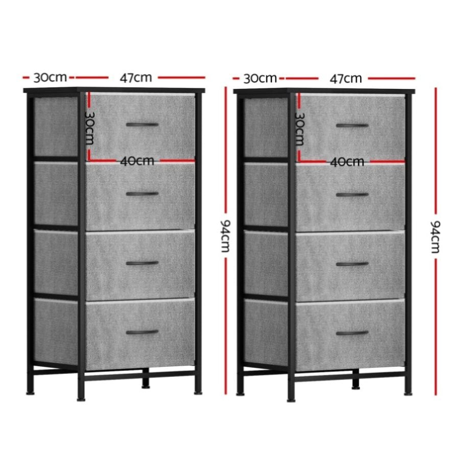 Artiss Set of 2 Chest of 4 Drawers Storage Dresser Tallboy Grey DIY-CDR-4D-GYX2