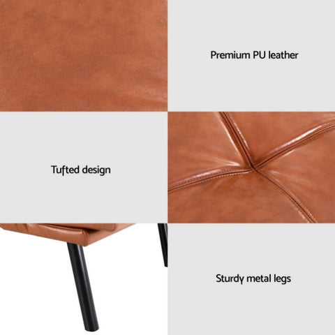Artiss Sofa Bed Convertible 3 Seater Couch Recliner Lounge Chair Leather Brown SBED-J-01-LEA-BR-AB