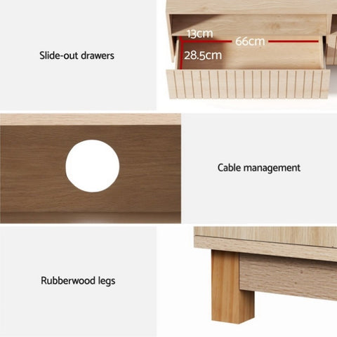 Introducing the Karel Entertainment Unit, a stylish and functional addition to your living space. This unit features a marble-effect tabletop, two drawers with fluted panels and two open shelves, adding a touch of elegance to its design. With its sturdy construction and solid rubberwood legs, it not only provides durability but also adds a modern flair to your room. The Karel Entertainment Unit is not only aesthetically pleasing but also practical. It comes with convenient cable management to keep your wires organised and tangle-free. With its high weight capacity, you can confidently store your entertainment devices and accessories. Assembly is a breeze, making it easy for you to set up and enjoy your entertainment area in no time. Entertain in style with the Karel Entertainment Unit from Artiss.