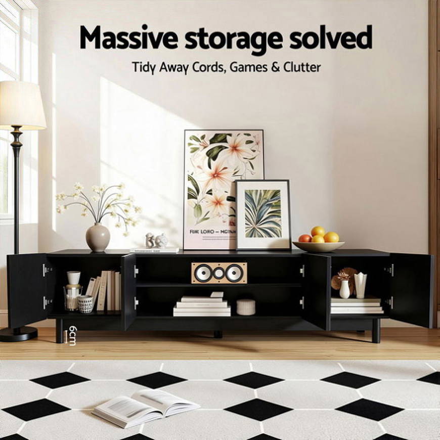 Artiss TV Unit Entertainment Unit Storage Cabinet 180cm Black FUR-Z-CT02-TV180-BK-AB