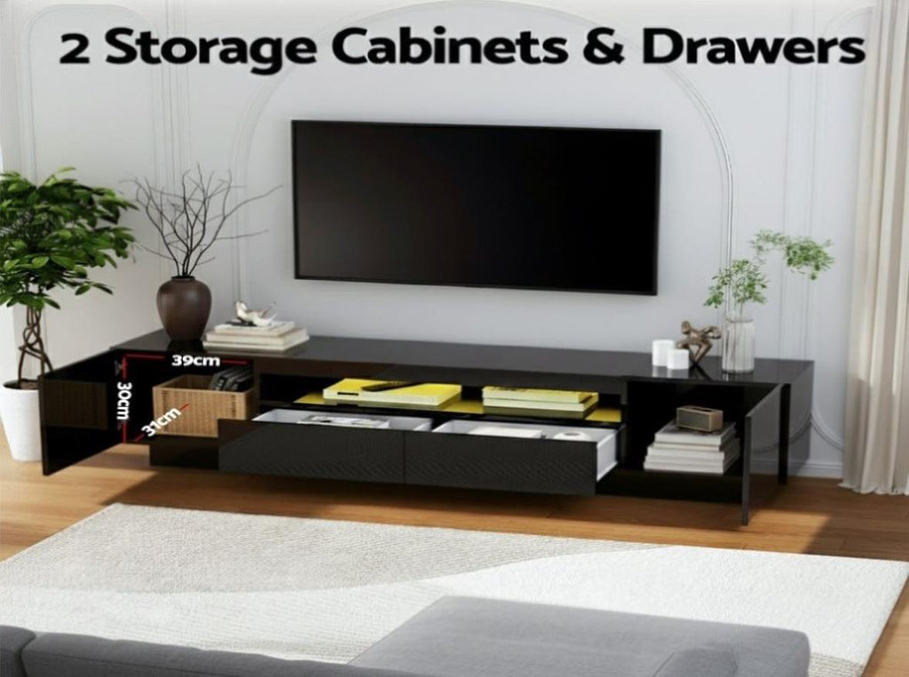 Artiss TV Unit Entertainment Unit Storage Drawer RGB LED 180cm Black FURNI-Q-LED-TV180-2D-BK-AB