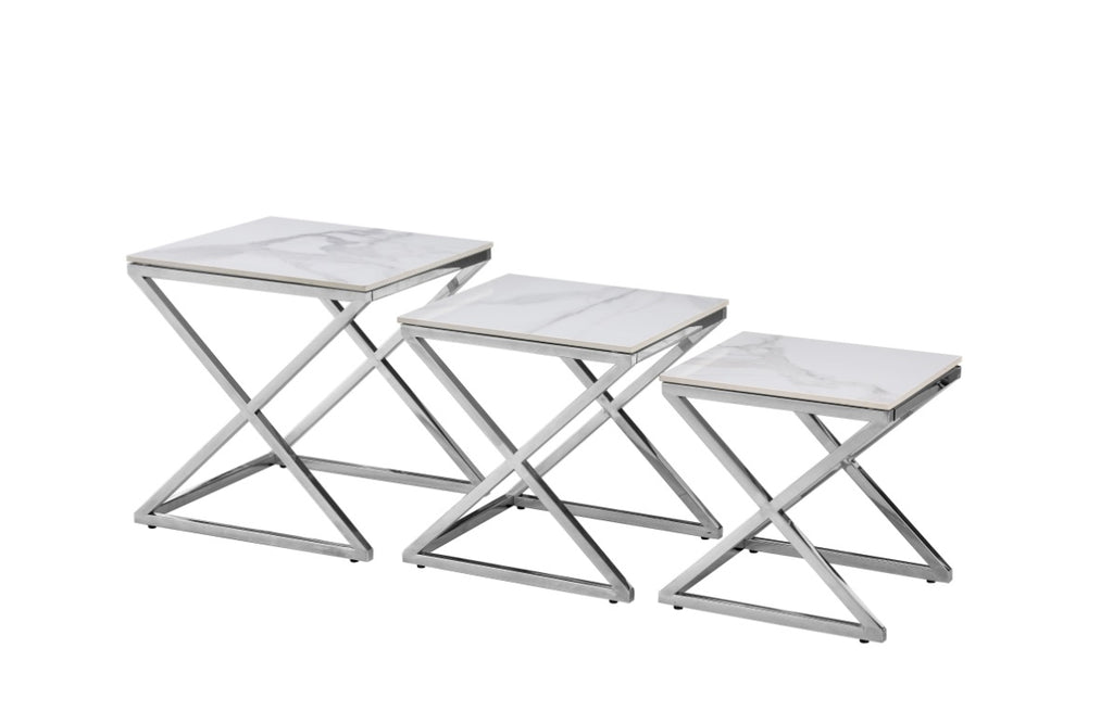 Bella Set of 3 Silver Side Table - White Marble V292-ST-BELLA-SO3-SILVERBASE-WHITEMARBLE