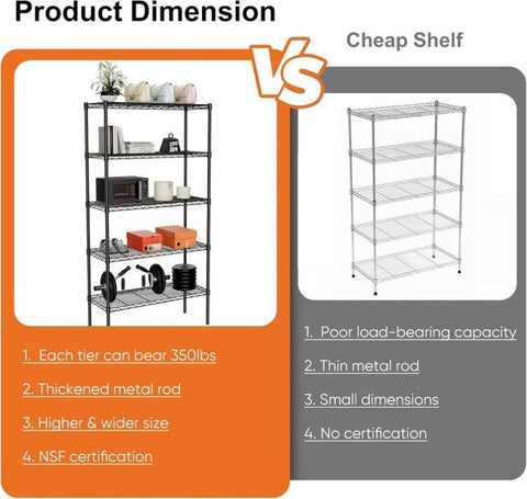 - HEAVY-DUTY METAL STRUCTURE: Crafted from premium metal with a rust-resistant finish, each shelf supports up to 175 kgs. This durable rack delivers long-lasting performance in humid kitchens, steamy bathrooms, or busy laundry rooms.