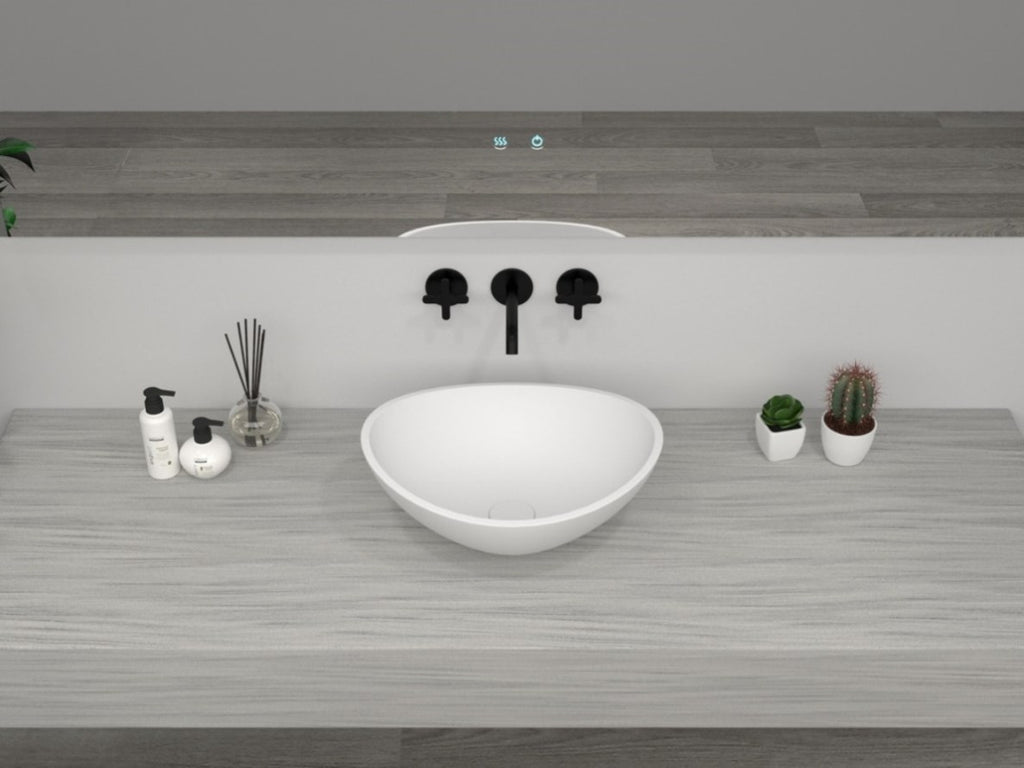 Curved Top Edge Basin Cast stone - Solid Surface Basin 420mm V567-PS-2220