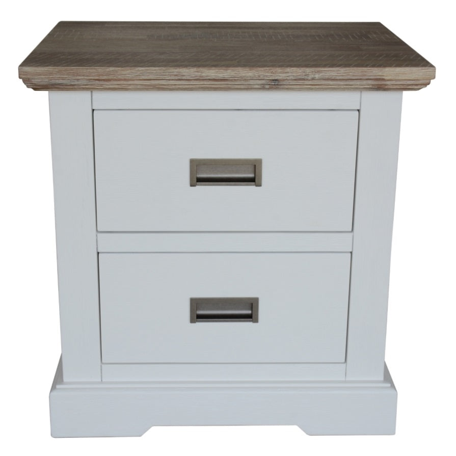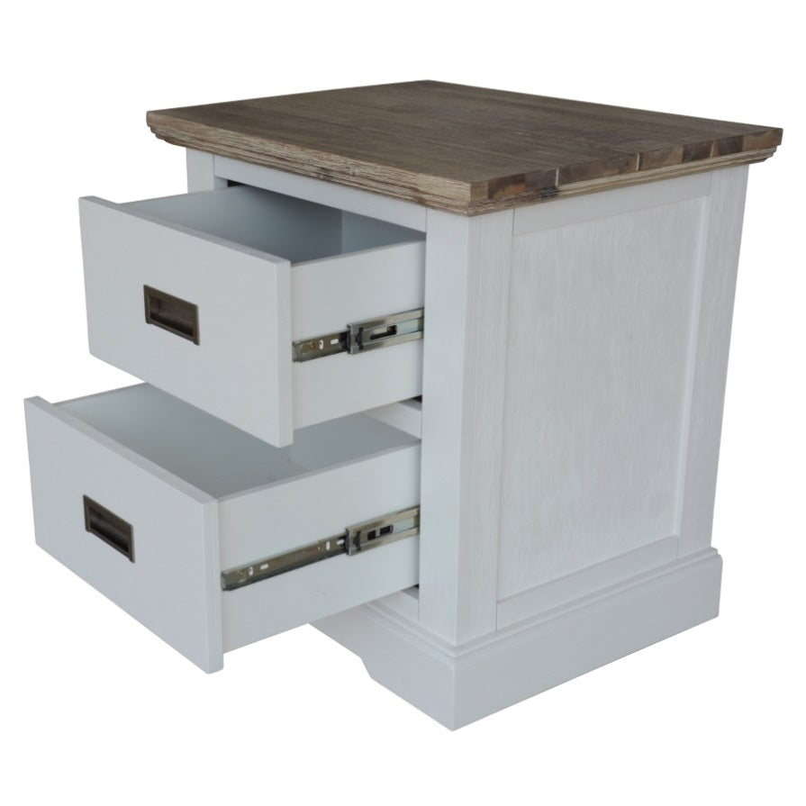 This good looking bedside crafted in the Hampton style, not only uplifts the charm of the bedroom but also helps keep it well-organised. The bedside table has 2 drawers, and it features multi-coloured acacia timber top, displaying different tones and hues. Both drawers have full metal extension runners and metal handles in an antique finish. The fully assembled furniture piece is made of sustainably harvested, solid acacia timber. The wood is known for its strength, shock resistance, durability, and ease of maintenance. Its multi-colour and white finish goes well with a variety of interior decor styles, and a one-year warranty is included with it.