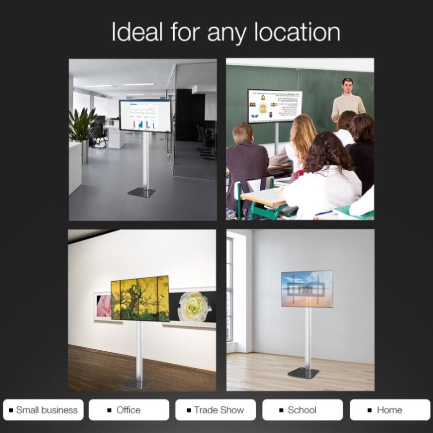 The Fortia Stationary TV Stand is designed with convenience and durability in mind, and is ideal for use in a variety of settings. Whether you need a versatile stand for your office, school, small business, trade show, conference presentation, or home, it fits seamlessly.