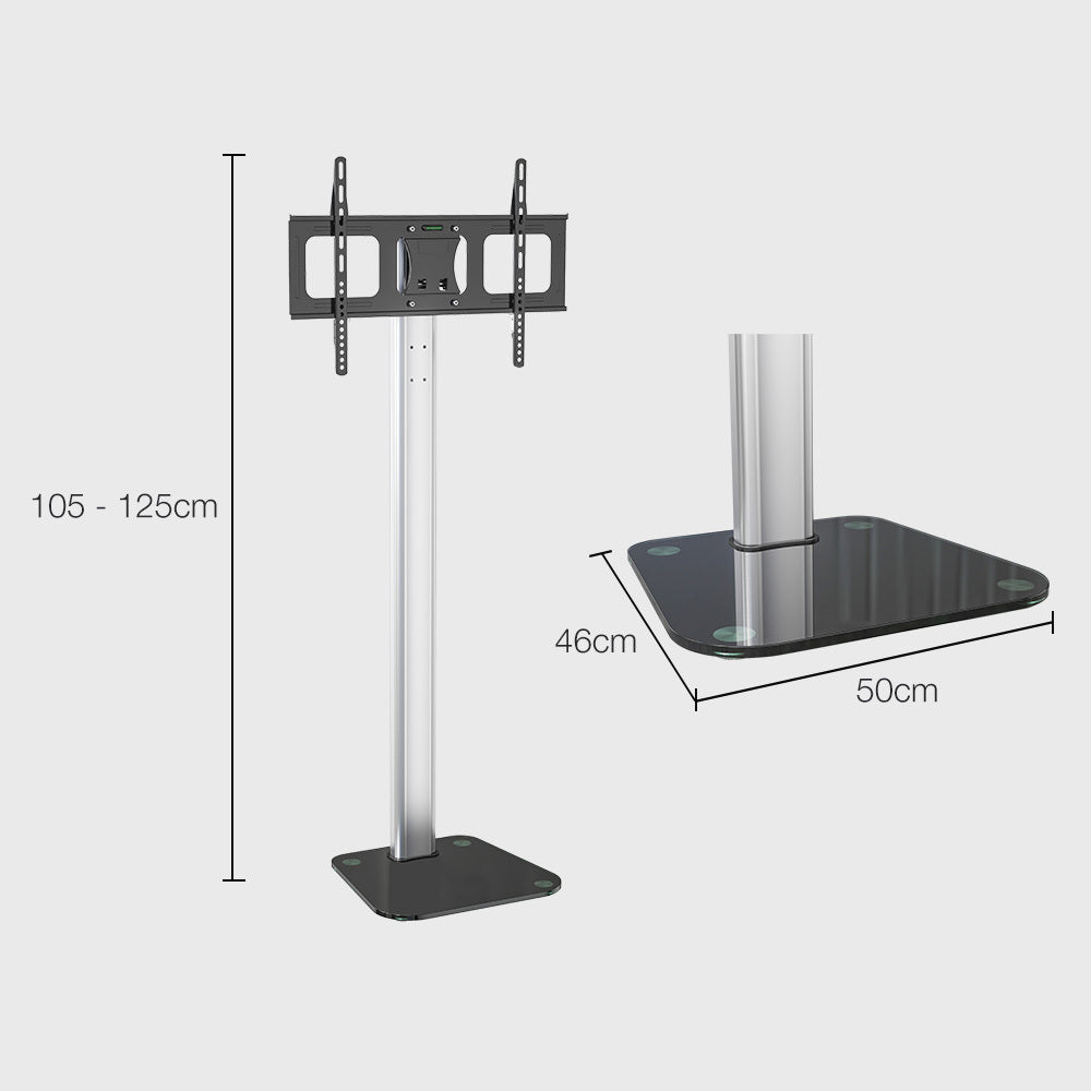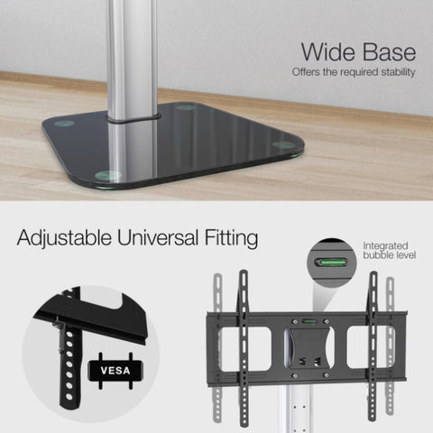 The Fortia Stationary TV stand mount is easy to assemble and accommodates screens sized between 32β-70β, with adjustable VESA compatible universal fitting. Its smooth swivel and tilt functions allow you to adjust the angles for the perfect ergonomic viewing position. The height of the stand can also be adjusted between 105 to 125cm in order to provide the ideal line of sight .