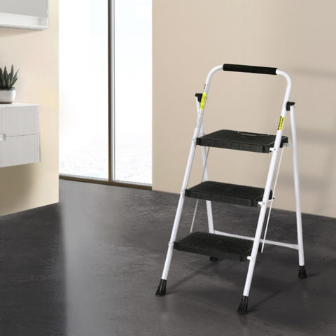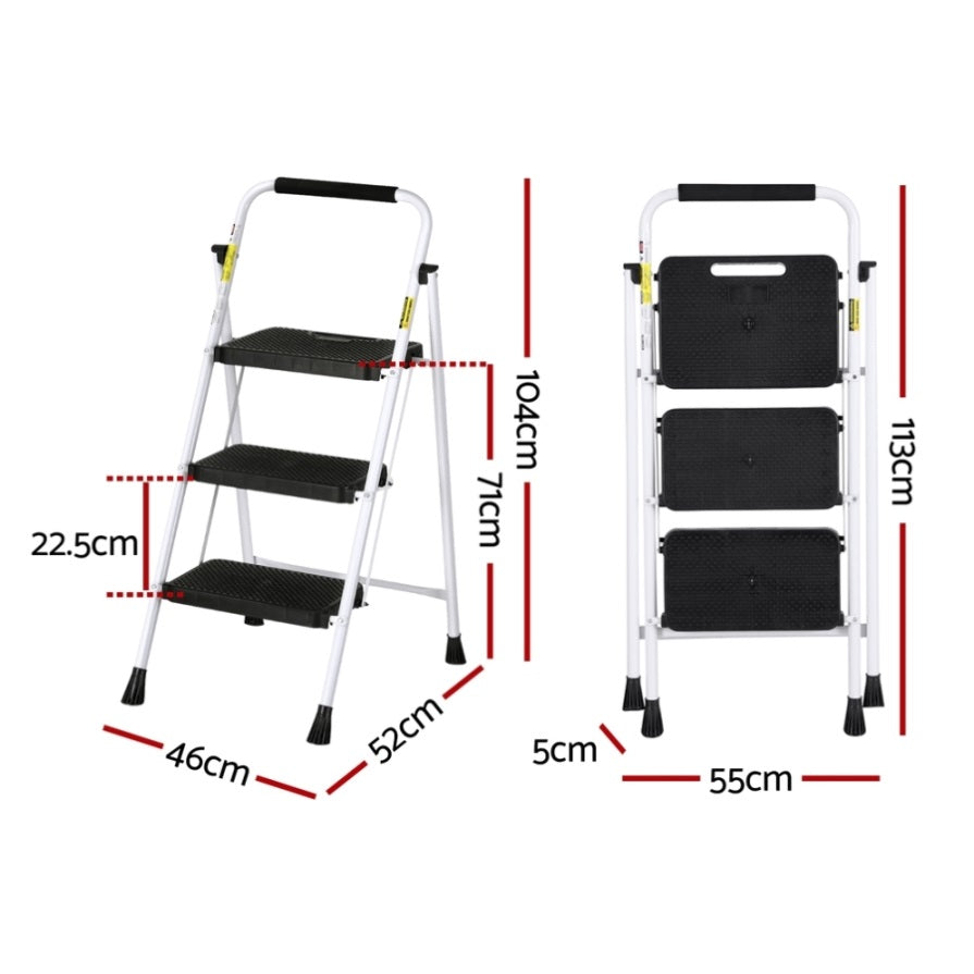Climb your way to the top with the Giantz 2/3/4 Step Ladder. Made from a lightweight steel construction, the step ladder is easy to carry but incredibly stable. The secure design and additional bracing make the step ladder extra safe and stable when working at height. It features a non-slip tread on each step, a foam easy-grip safety handle and non-slip rubber feet to prevent slipping and floor damage. The ladder folds down easily, so you can slip it into any storage space. It is easy to carry and suitable for all kinds of odd jobs on any surface, indoors or outdoors. No matter what needs work around your home, have a Giantz 2/3/4 Step Ladder at the ready!