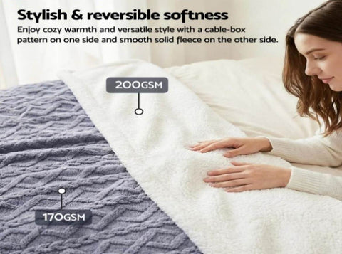 Wrap yourself in luxury with the Giselle Bedding Two-Tone Cable Knit Throw Blanket, the perfect addition to any stylish Australian home. This throw features a distinctive dual-sided design, offering both versatile aesthetics and superior comfort. One side showcases an elegant knitted cable-box pattern for a high-end, smooth, and modern textural appearance, while the reverse side is a solid-colour ultra-soft plush fleece, allowing you to switch up your décor instantly. Expertly crafted from double-sided fleece, it delivers an ultra-plush and cosy texture that provides exceptional warmth without being heavy, ensuring a comfortable all-season layer. With a generous size of 203cm x 230cm, this blanket is genuinely multi-purpose, ideal for covering a sofa, adding warmth to your bed, or taking along on travels. Beyond its beautiful design, it is built with premium quality construction and is delightfully easy-care and machine washable, guaranteeing enduring quality and convenience.