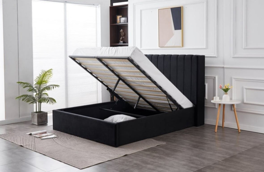 Introducing the Hilton Velvet Gas Lift Bed, a luxurious and sophisticated addition to your bedroom. Available in a sleek and elegant black velvet finish, this exquisite bed exudes modern opulence and timeless style. Offered in King (195cm wide x 220cm long x 130cm head height) sizes, this bed provides options to suit your space and comfort preferences. With its gas lift storage and velvet upholstery, the Hilton Velvet Gas Lift Bed is the perfect addition to your bedroom, requiring assembly for a truly luxurious sleeping experience.