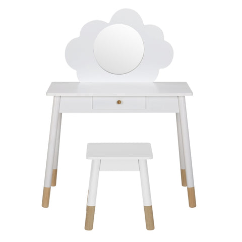 Keezi Kids Dressing Table Chair Set Vanity Makeup Wooden Leg Mirror Drawer FURNI-C-CLOUD-KDT-WH