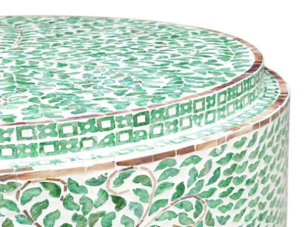 Our hand-crafted Mother of Pearl furniture is expertly crafted, imparting each piece with a unique character of its own. Such pieces may bear small markings, smudges, glue spots, and other subtle details all of which contribute to its one-of-a-kind look. Patterns may differ from those shown in its original photos. Note that these details are not faults and are instead part of the charm of such hand-crafted items. To maintain these pieces, they should not be used outdoors, nor should cleaning chemicals be used. Instead, use a lint-free cloth, and also make sure not to place these pieces near heat or sunlight, as this may cause fading.