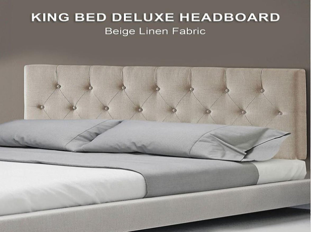 Linen Fabric King Bed Deluxe Headboard Bedhead - Beige V63-821483