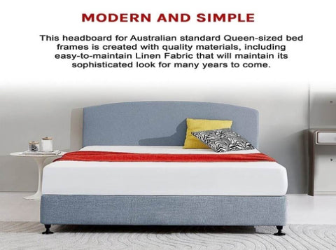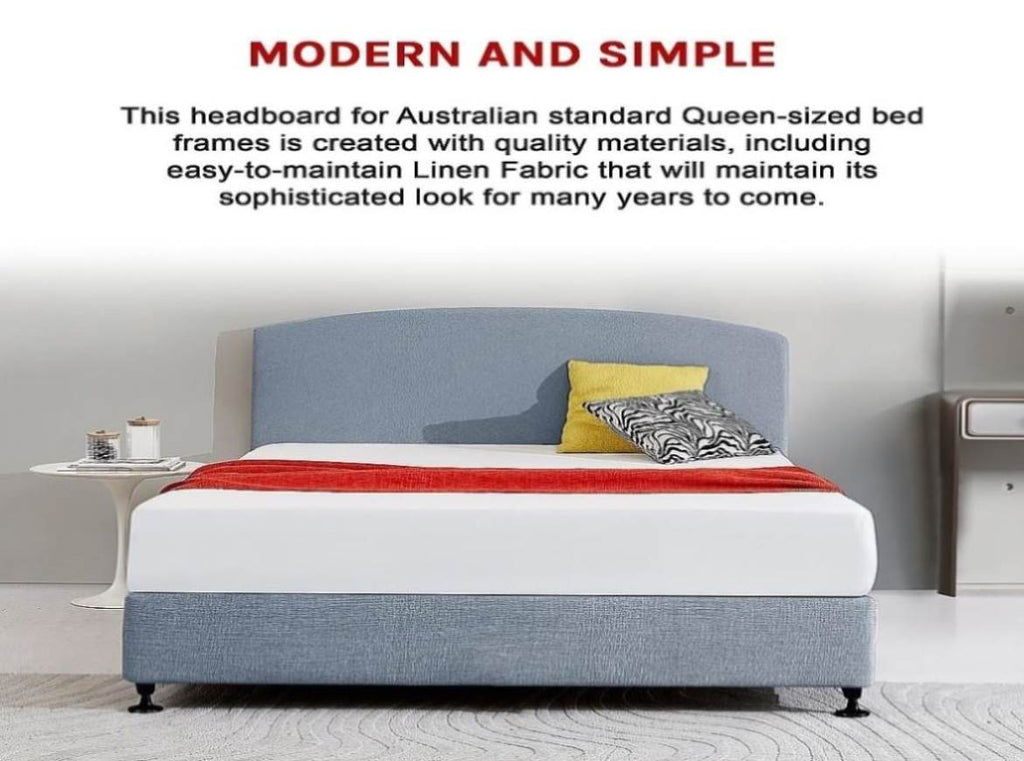This headboard for Australian standard Queen-sized bed frames is created with quality materials, including easy-to-maintain Linen Fabric that will maintain its sophisticated look for many years to come. This particular model comes with simple linen fabric that will blend seamlessly with a wide variety of bed frames and other bedroom furniture.