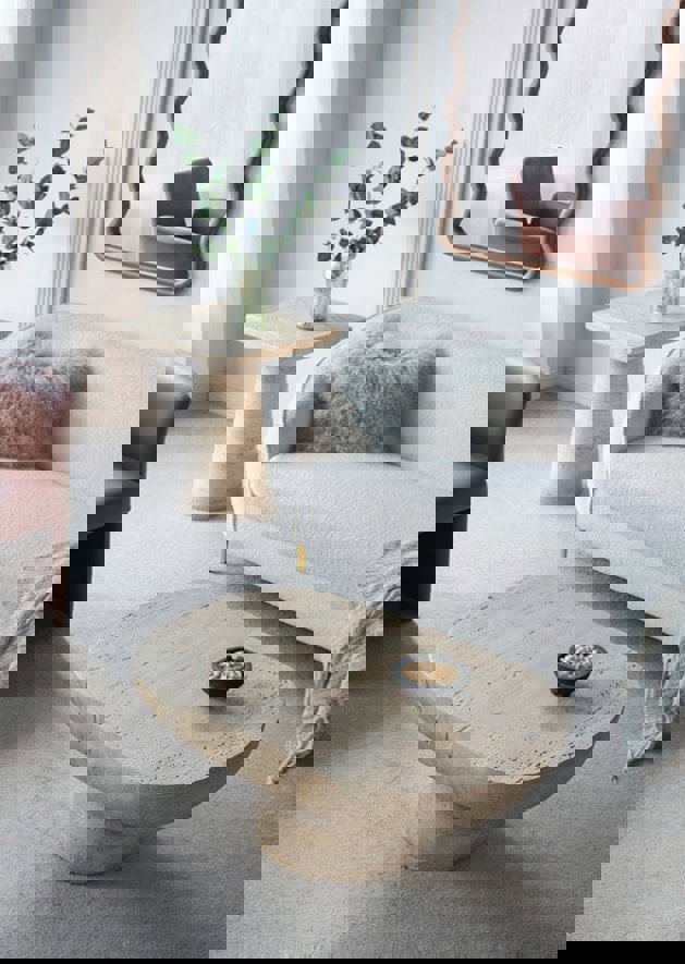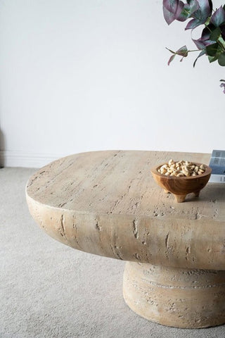 The LOGAN CEMENT COFFEE TABLE is a modern masterpiece, crafted with a unique oval shape and made of premium cement, adding an exclusive touch of sophistication and luxury to your home. This timeless piece is sure to add an elegant and tasteful statement to any living space.