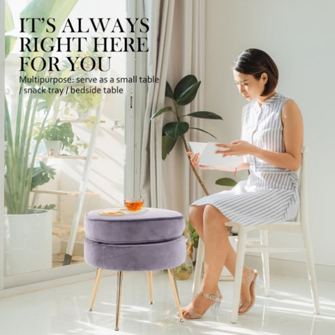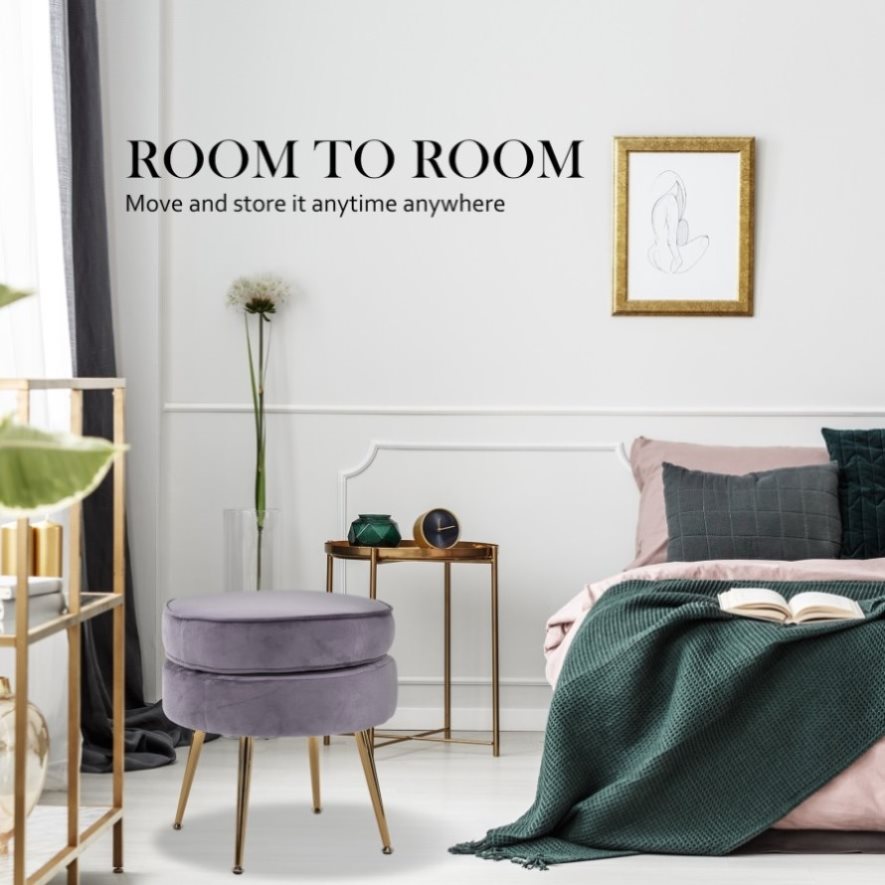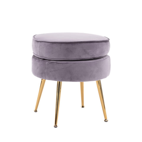 Ottoman Foot Stool Velvet Fabric Metal Leg Round GREY V274-FT-VST-1596-GY