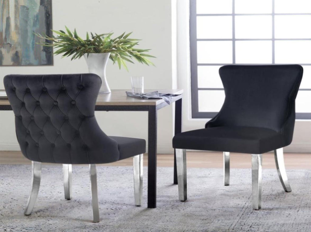 Paris Black Velvet & Silver Polished Steel Upholstered Dining Chairs Tufted Back - Set of 2 V292-DC-PARIS-BLACK-SILVER