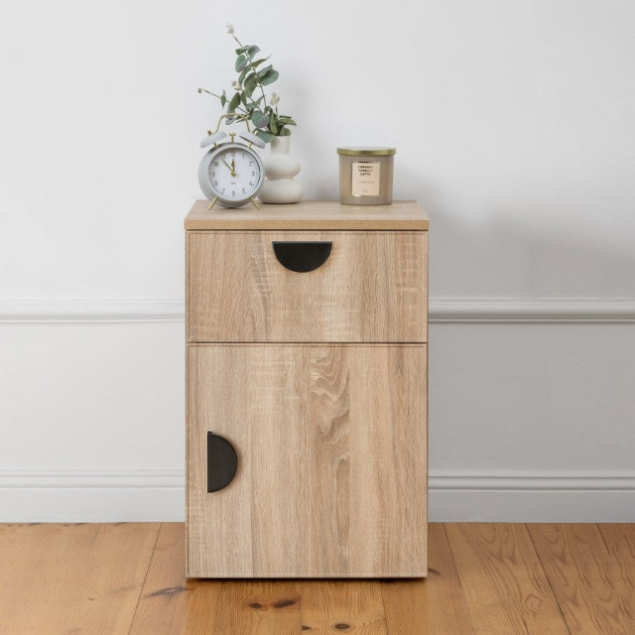 PORTO BEDSIDE TABLE - NATURAL OAK - SLIM - HALF MOON BLACK V164-ECS13STB04B