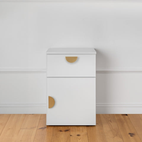 PORTO BEDSIDE TABLE - WHITE - SLIM - HALF MOON BRASS V164-ECS13WTB04G