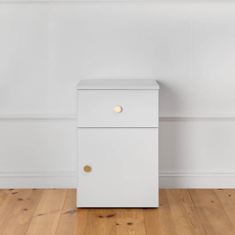 PORTO BEDSIDE TABLE - WHITE - SLIM - ROUND BRASS V164-ECS13WTB06G