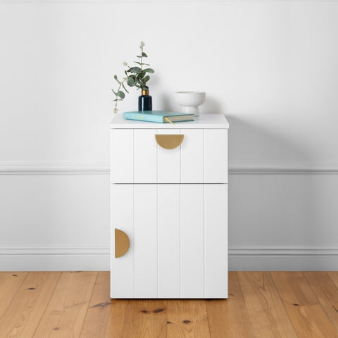 PORTO BEDSIDE TABLE - WHITE - VJ PANEL - HALF MOON BRASS V164-ECS13WVB04G